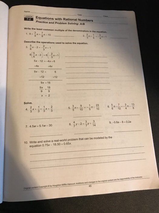 Lesson 9 3 Solving Rational Equations Practice And Problem A B Tessshebaylo